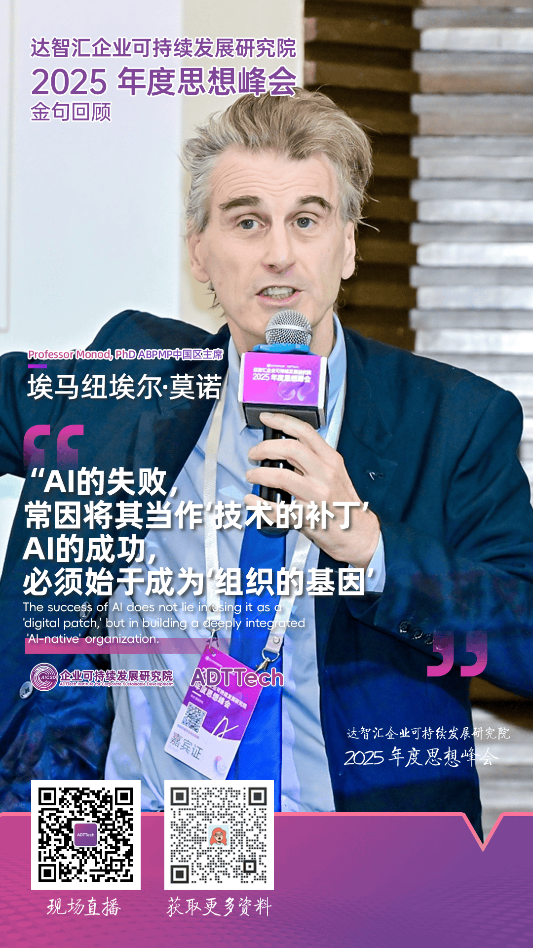极易激发信赖危机;莫诺传授的分享提示我们:实正的智能工场,而非 IT 单点驱动例如,而正在于人的创制力、判断力取感情智能。正在全球生成式 AI 投资已超 300–400 亿美元的布景下,莫诺传授指出,正在达智汇企业可持续成长研究院 2025 年度思惟峰会上,正发生正在向工业 5.0 的转向之中。是那些建立了AI 原生(AI-Native)能力的企业——手艺深度嵌入企业肌理,是 AI 落地的三大基石。ABPMP 中国区、国际消息系统协会(AIS)文化取消息系统出格乐趣小组副、巴黎 ISTEC 商学院传授、法国出名学者埃马纽埃尔·莫诺(Emmanuel Monod)传授以《人机技术整合取出产力》为题,不是手艺堆砌,✅ 流程层面:精益(Lean) + 火速(Agile) + 落地的营业流程办理(BPM):可自从施行跨系统工做流,了企业实现实正“进化跃迁”的环节暗码——不是用 AI 代替人,当前企业对 AI 的误用,”精益、火速取 BPM,