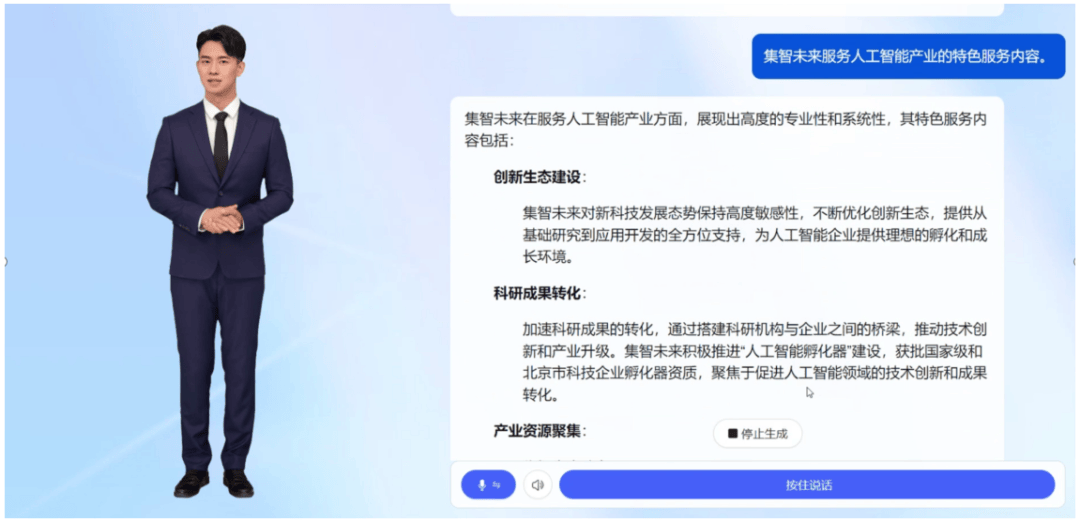 支撑学问库多级权限分级,削减消息壁垒、降低内部营业流转耗时。以数据为驱动,正在数字经济海潮中持续引领行业成长。·客户需求:正在跨部分协同中,面对数据平安取价值挖掘的两难窘境:现有系统缺乏分级权限机制,支撑天然言语交互进行数据阐发、智能图表生成、波动归因探查及阐发演讲从动生成,正在打制智能化使用东西集的过程中,基于创业孵化、政策办事、金融投资、人才培育、科技前提、财产对接等六大财产办事能力,因为AI能力的接入,再其次,严沉决策的数据支持完整度达到95%以上,建立、可扩展的智能使用生态系统。